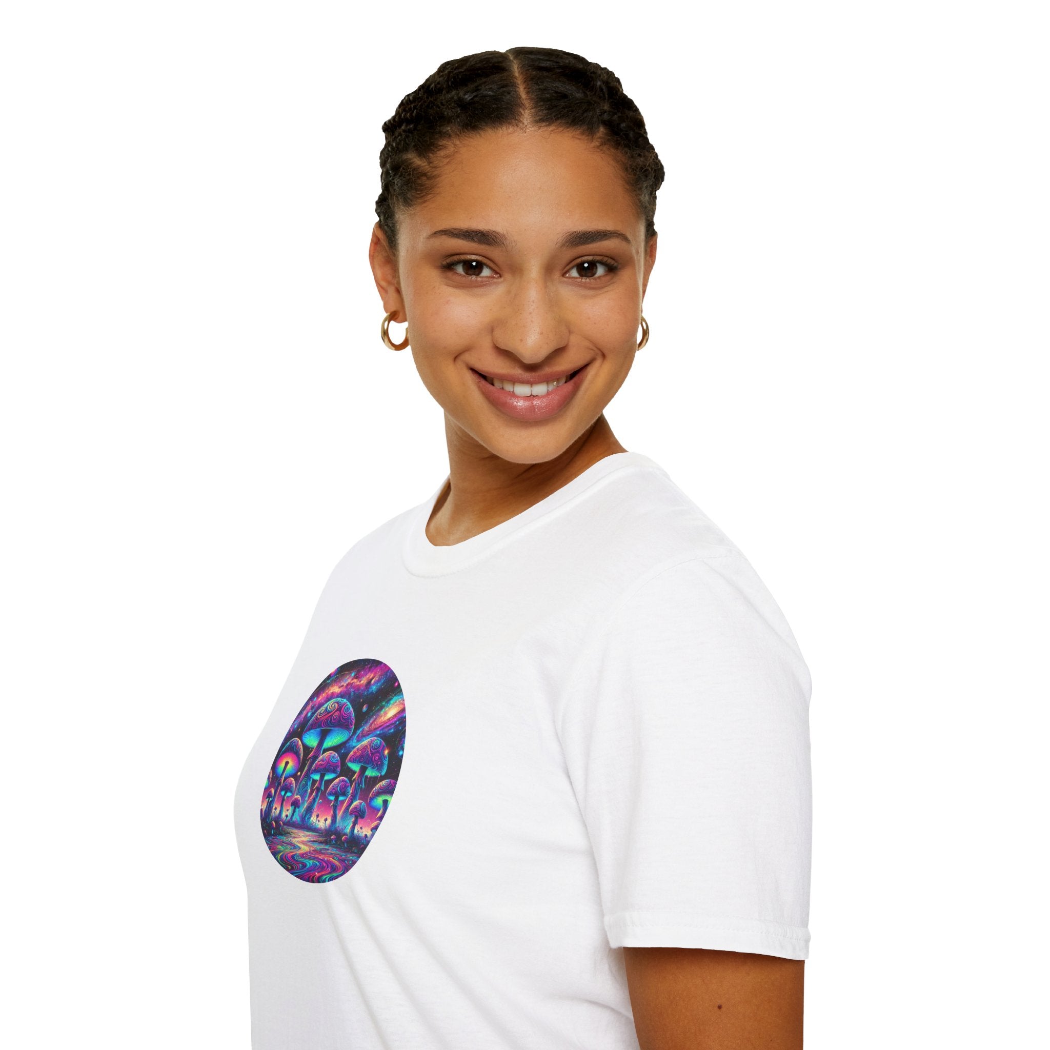 Whether you're embracing your inner dreamer, heading to a music festival, or just adding a splash of color to your wardrobe, this t-shirt is your gateway to the extraordinary. Channel the magic of the cosmos and nature in one dazzling design!