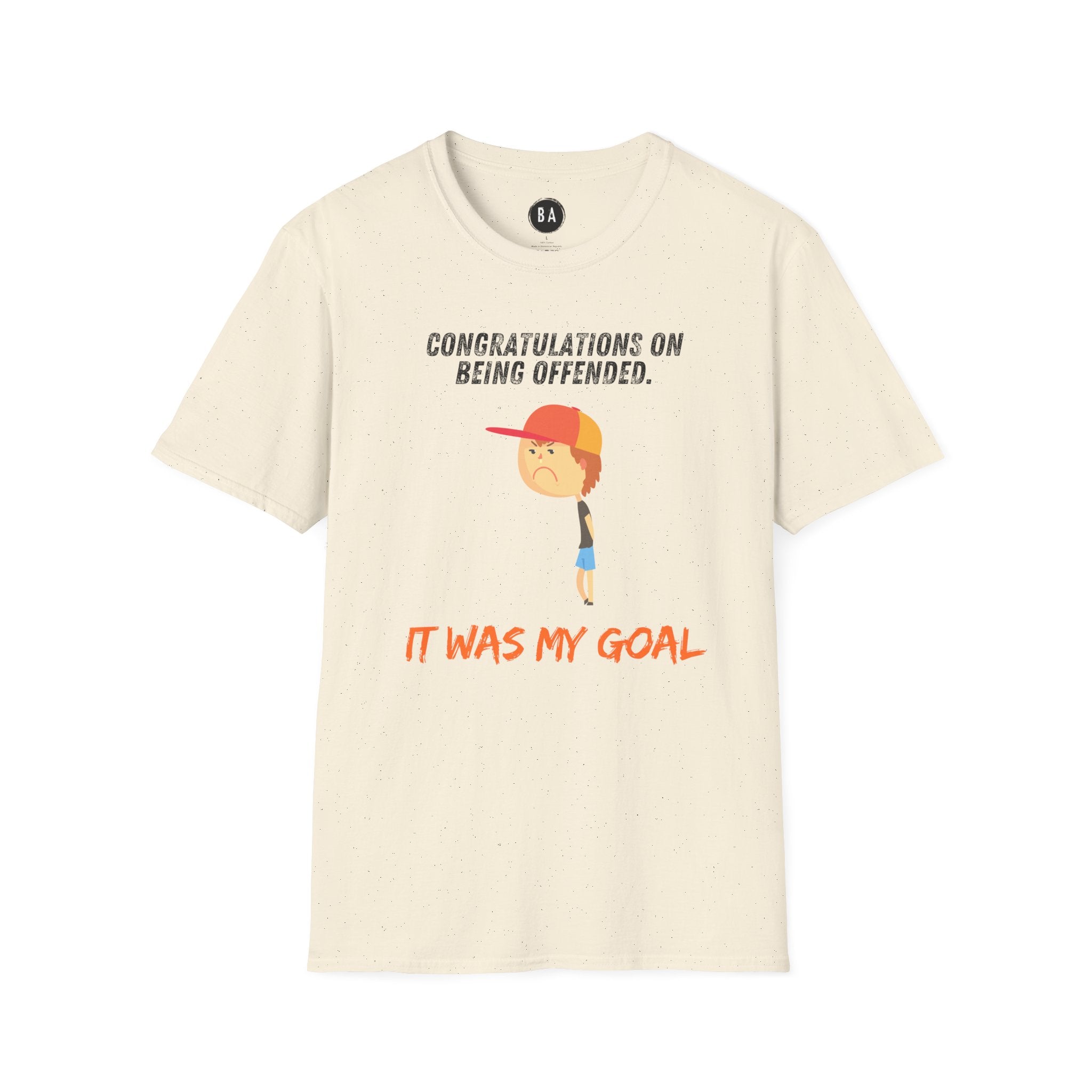 Finally, a T-shirt that does the talking for you! With "Congratulation’s on being offended. That was my goal," this tee is perfect for those who thrive on sarcasm and a little well-placed chaos. Soft, comfy, and guaranteed to trigger at least one person per outing. Mission accomplished.