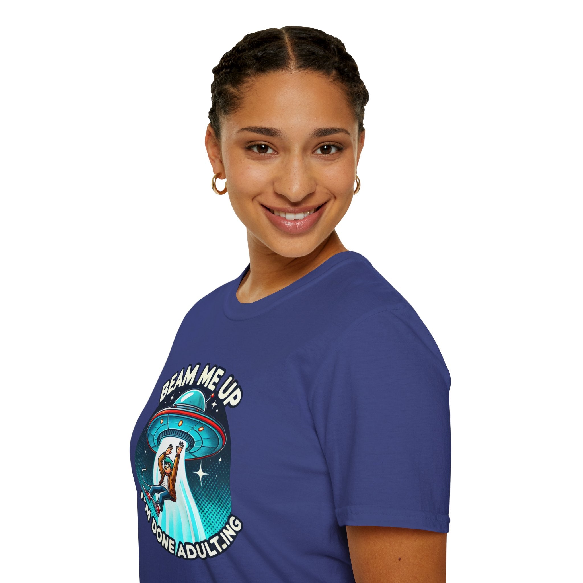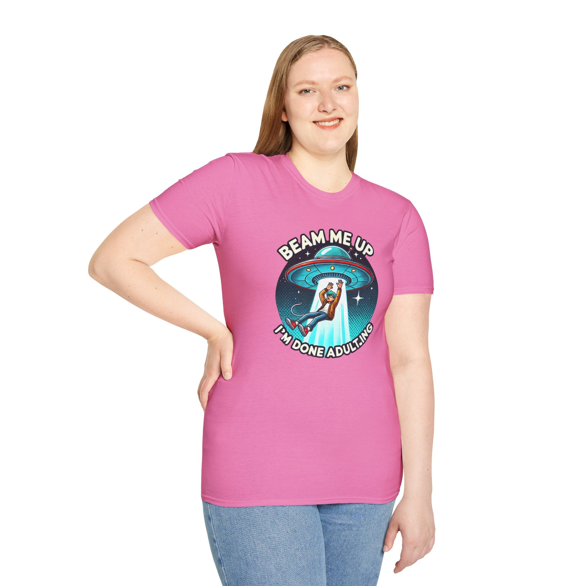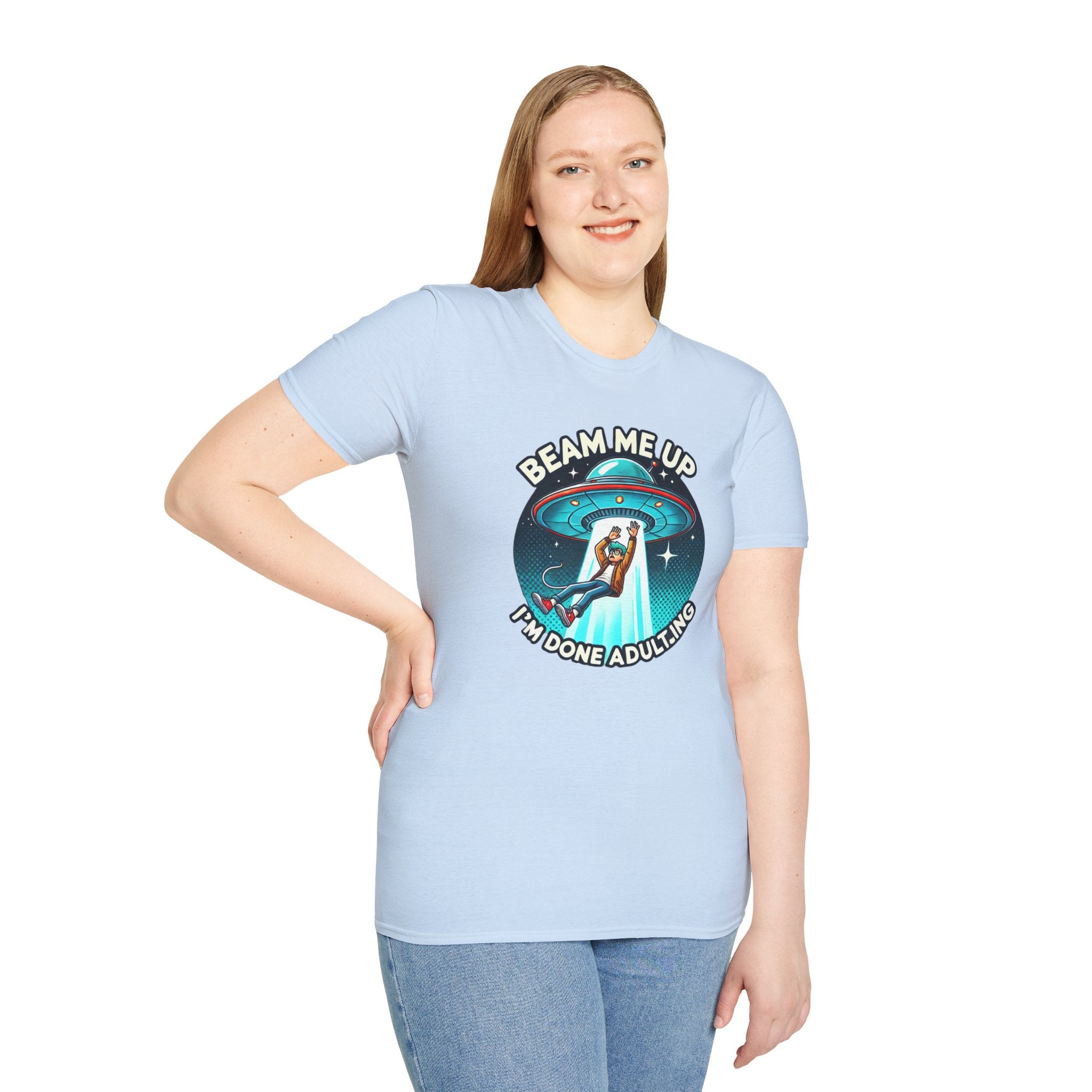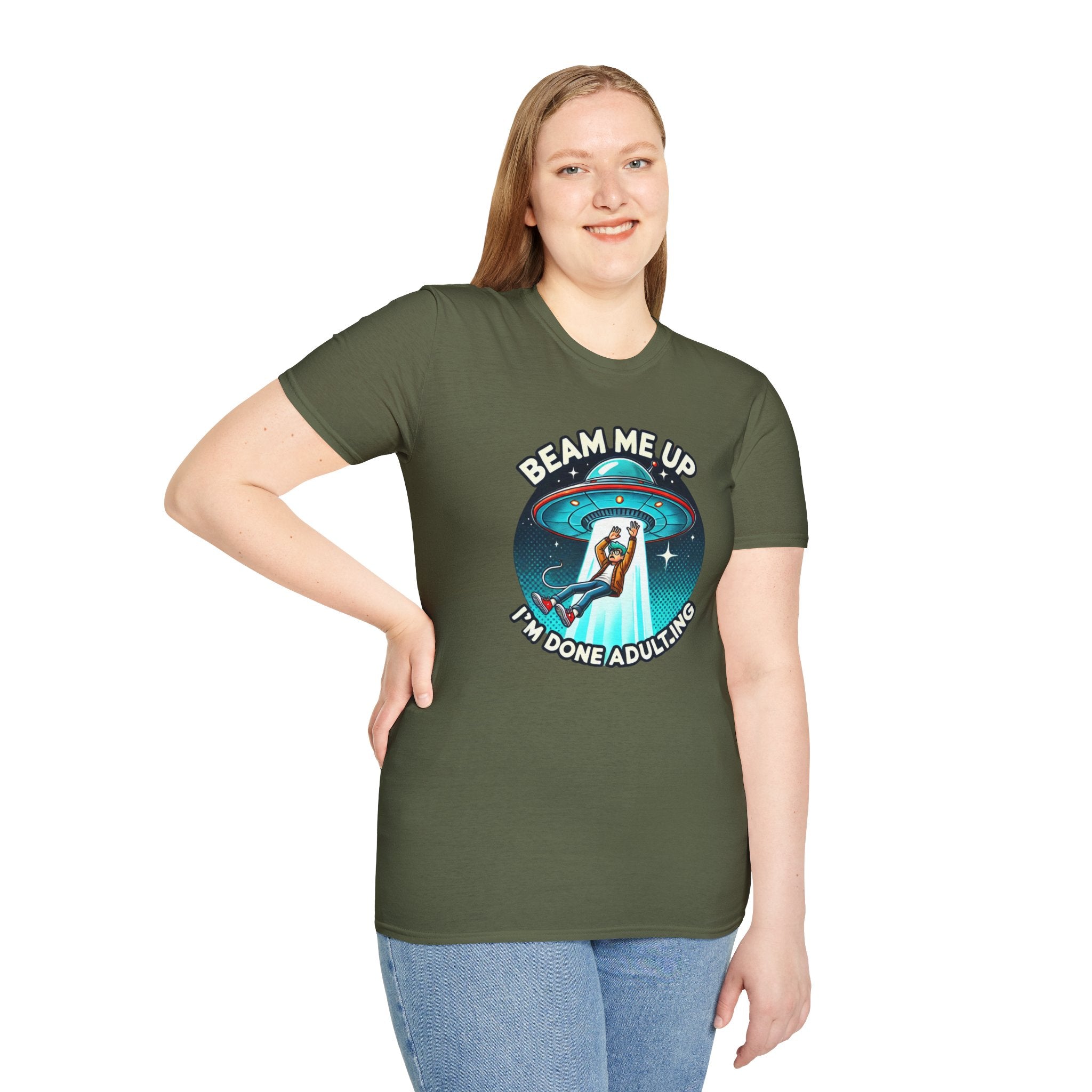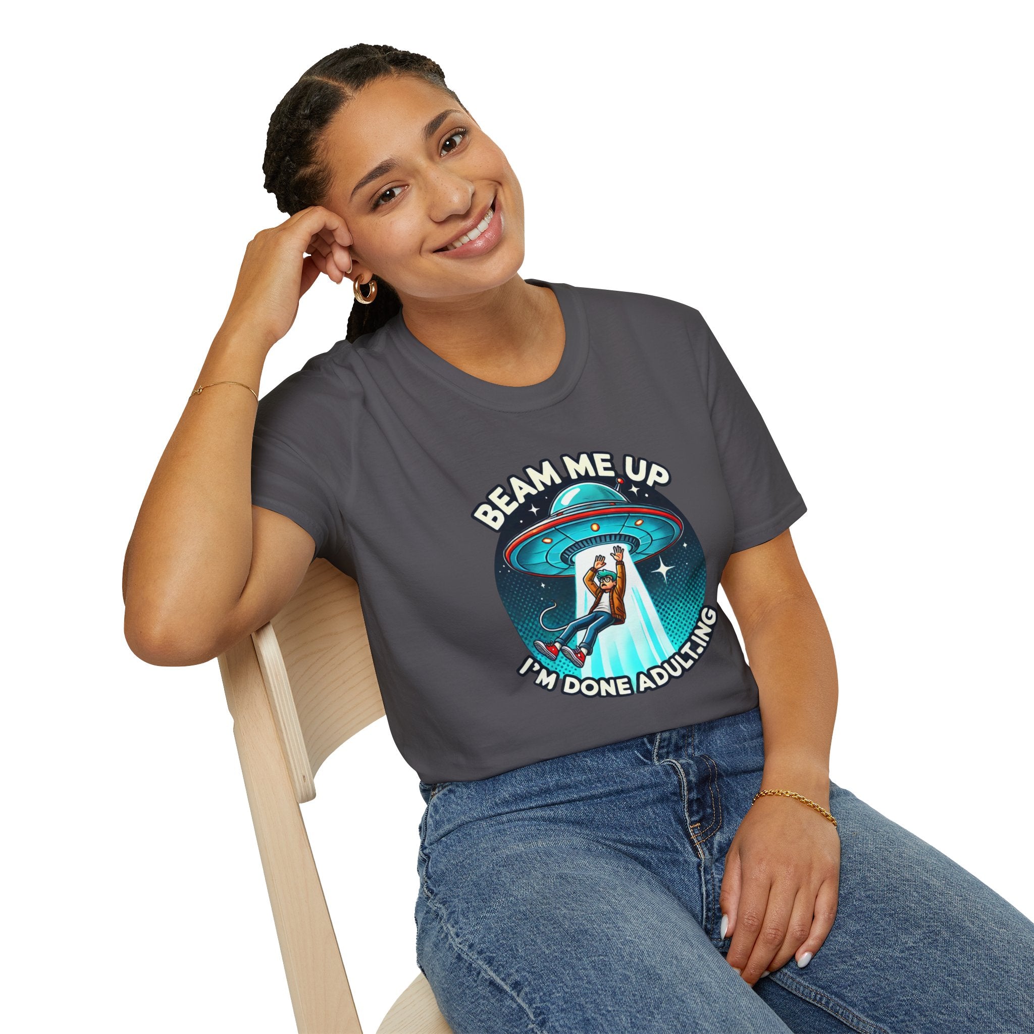 Tired of bills, responsibilities, and pretending to know what you’re doing? Let the aliens take over! This ultra-soft tee is perfect for anyone ready to ditch adulthood and join the mothership. Comfy, stylish, and guaranteed to get a few knowing nods from fellow exhausted earthlings.
